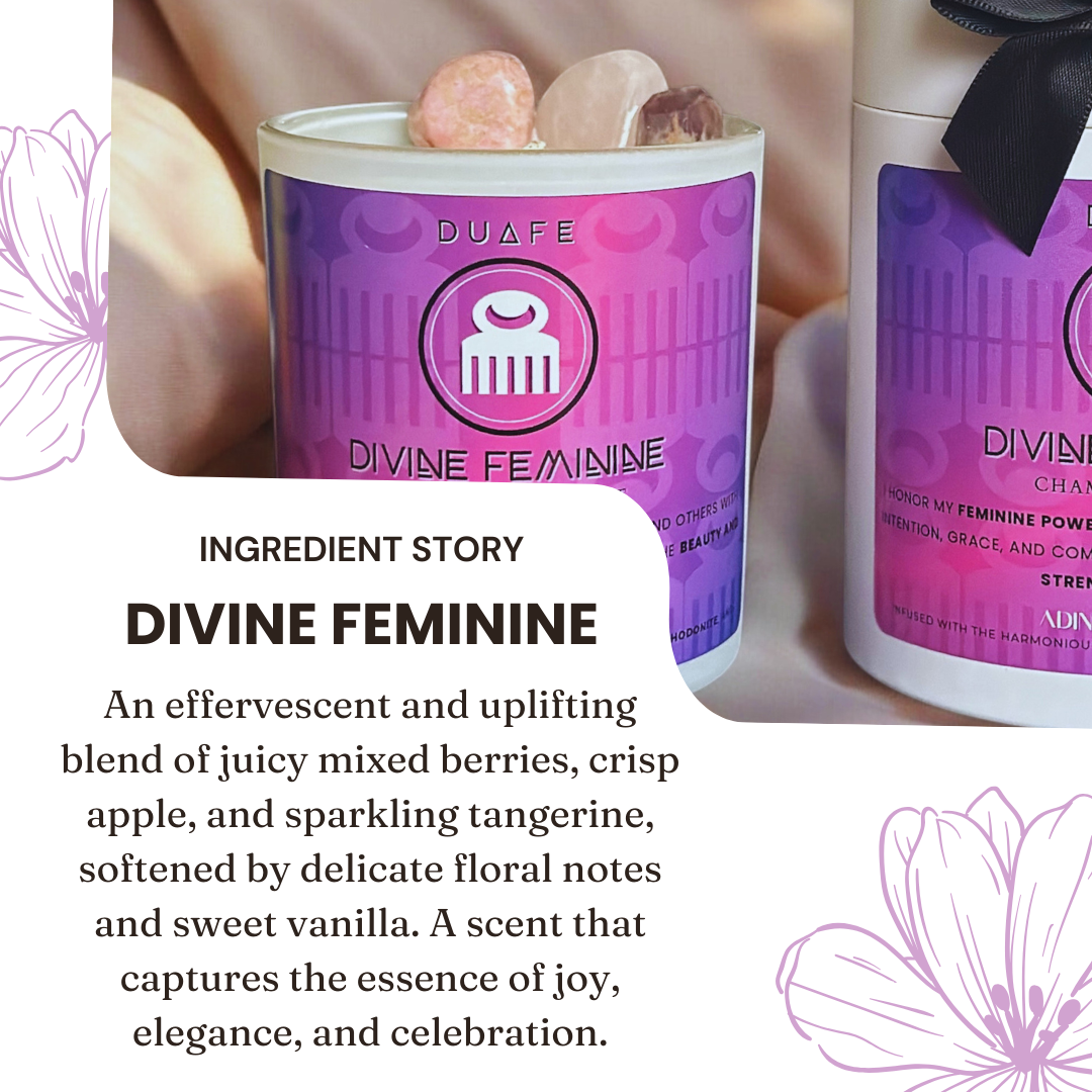 Let this candle be part of your daily ritual—whether you’re stepping into your power, setting loving intentions, or simply indulging in a moment of self-care. Your radiance is infinite, and Divine Feminine is here to remind you of that.