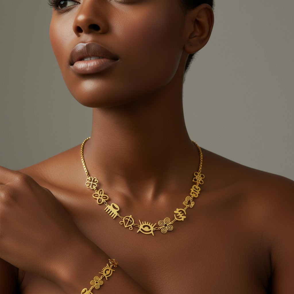 The Adinkra Legacy Set — Necklace + Bracelet + Gye Nyame Studs